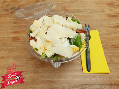 Wij maken de Caeser salade met kip en spekjes pas als we jouw bestelling krijgen, zo ben je dus verzekerd van het allerlekkerste salade voor de lunch.